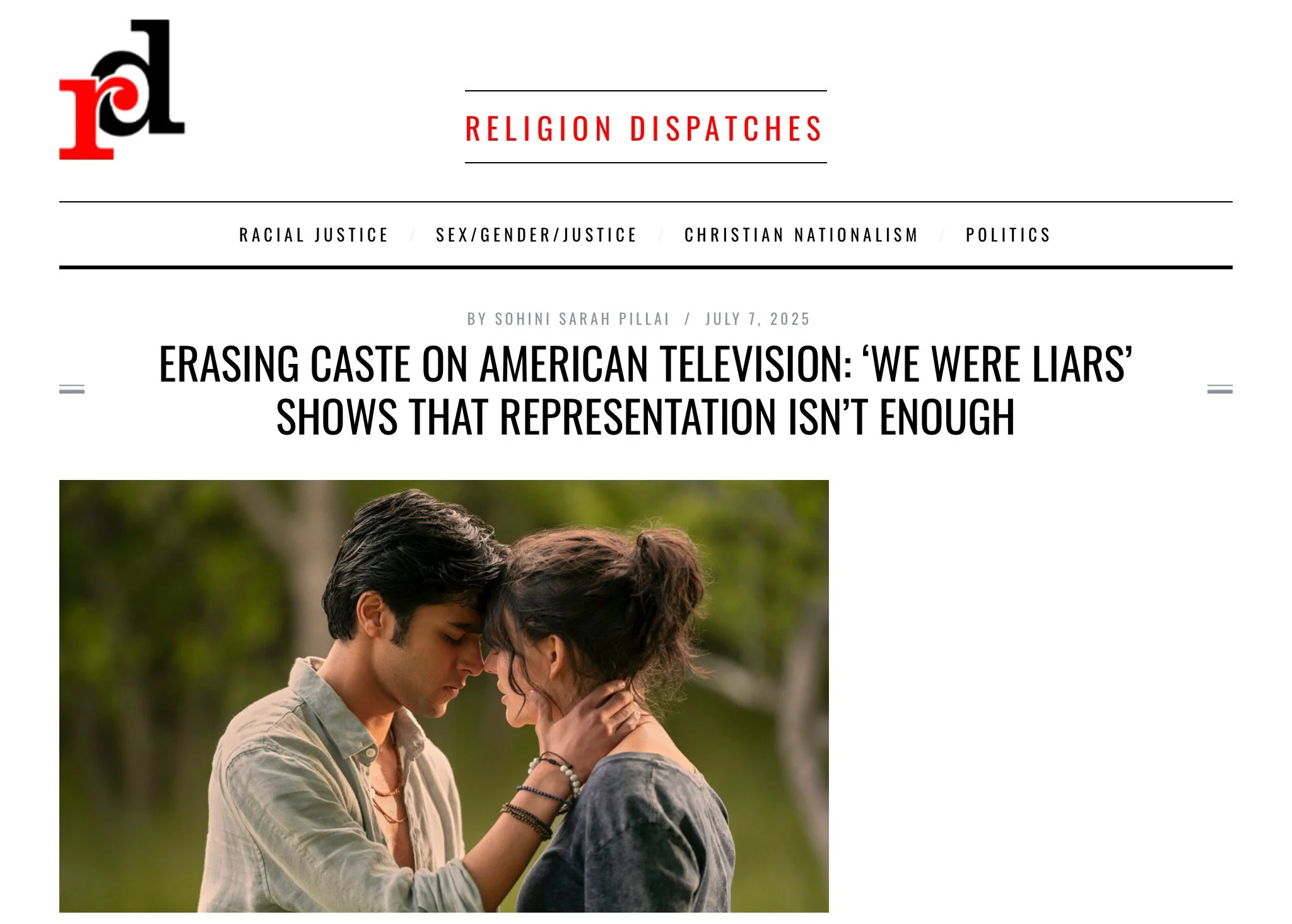 “Erasing Caste on American Television: ‘We Were Liars’ Shows That Representation Isn’t Enough,” Religion Dispatches, July 7, 2025.